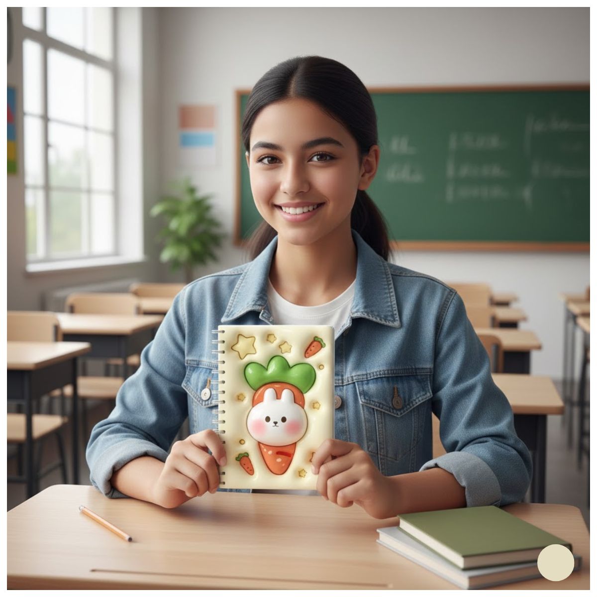 ¡Anota tus mejores ideas con la energía tranquila! Este Cuaderno de Notas Textura 3D Conejito es el compañero perfecto para quienes aman la estética moderna y buscan un espacio libre para sus pensamientos, clases o dibujos. Con un diseño vibrante como divertidas ilustraciones, esta libreta hará que escribir sea el momento más tierno, relajante de tu jornada.