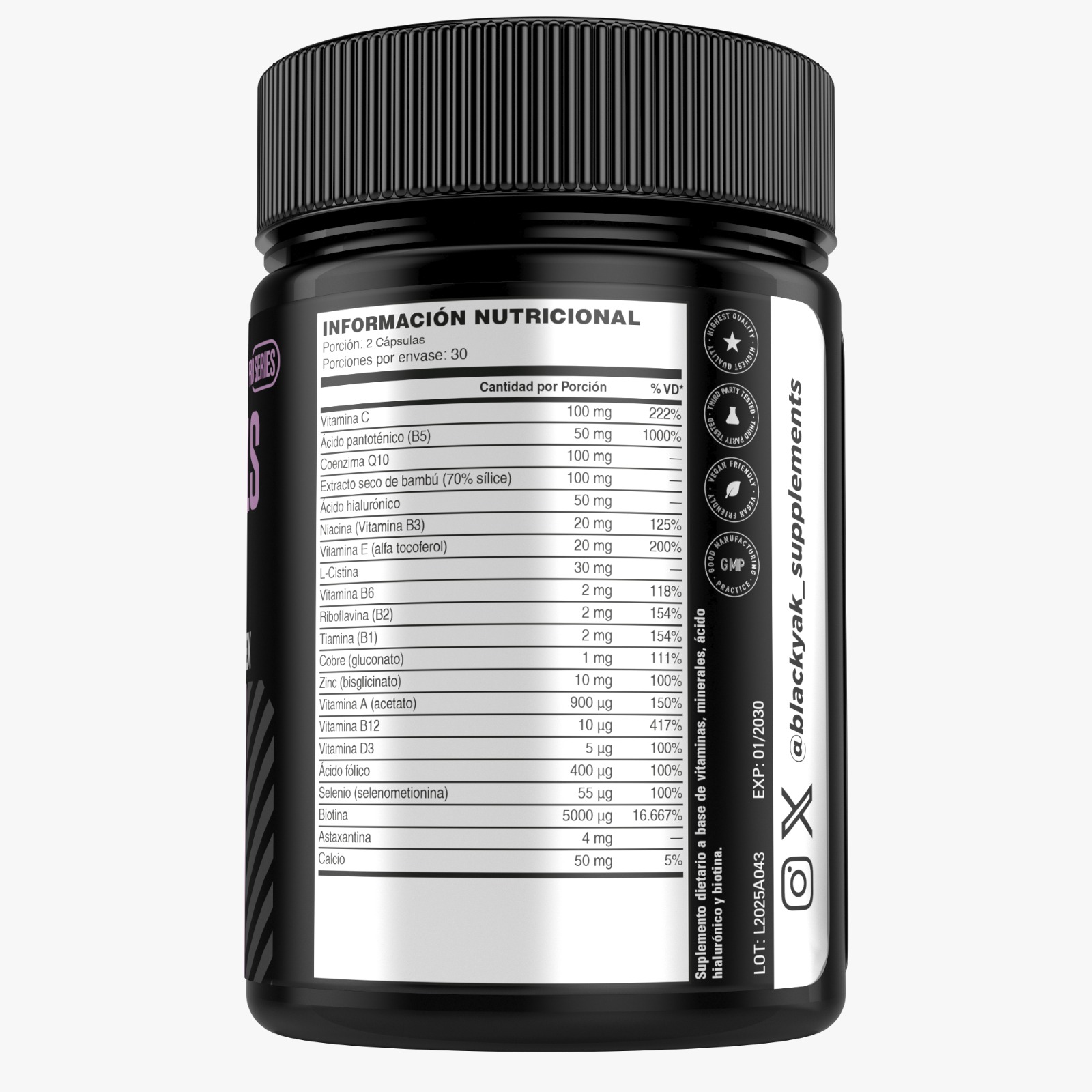 Hair, Nails & Skin Ultimate Complex es un suplemento avanzado formulado para nutrir desde el interior el cabello, las uñas y la piel. Combina vitaminas, minerales, antioxidantes y aminoácidos clave que trabajan en conjunto para mejorar la apariencia y la fortaleza día a día.