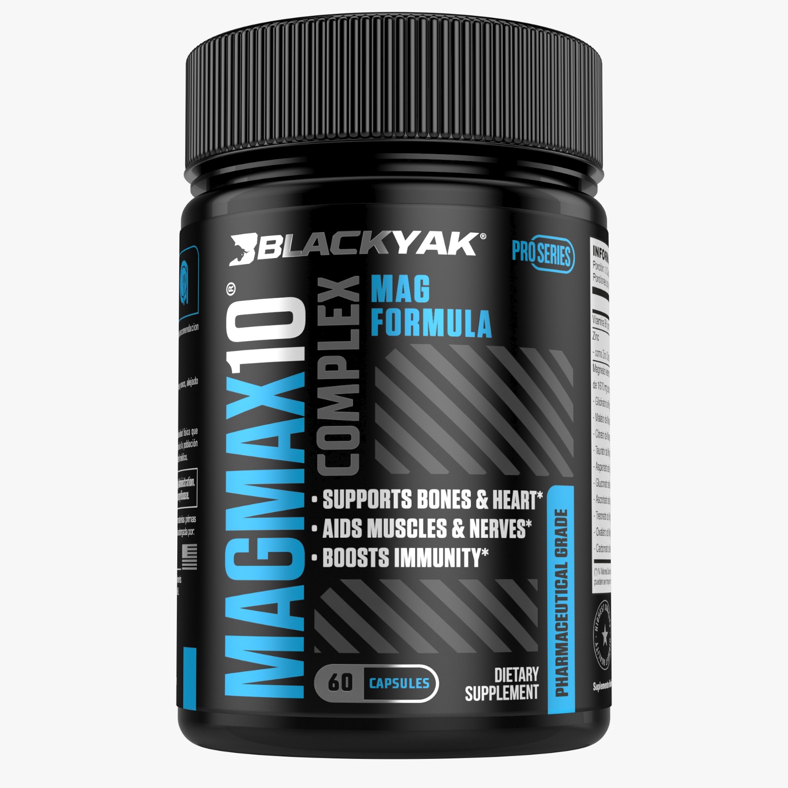 MAG10 MAX es un suplemento avanzado de magnesio de espectro completo, diseñado para brindar un soporte integral a la salud ósea, muscular y neuromuscular, combinando 10 formas biodisponibles de magnesio, junto con vitamina B6 y zinc, nutrientes esenciales para el funcionamiento óptimo del organismo.