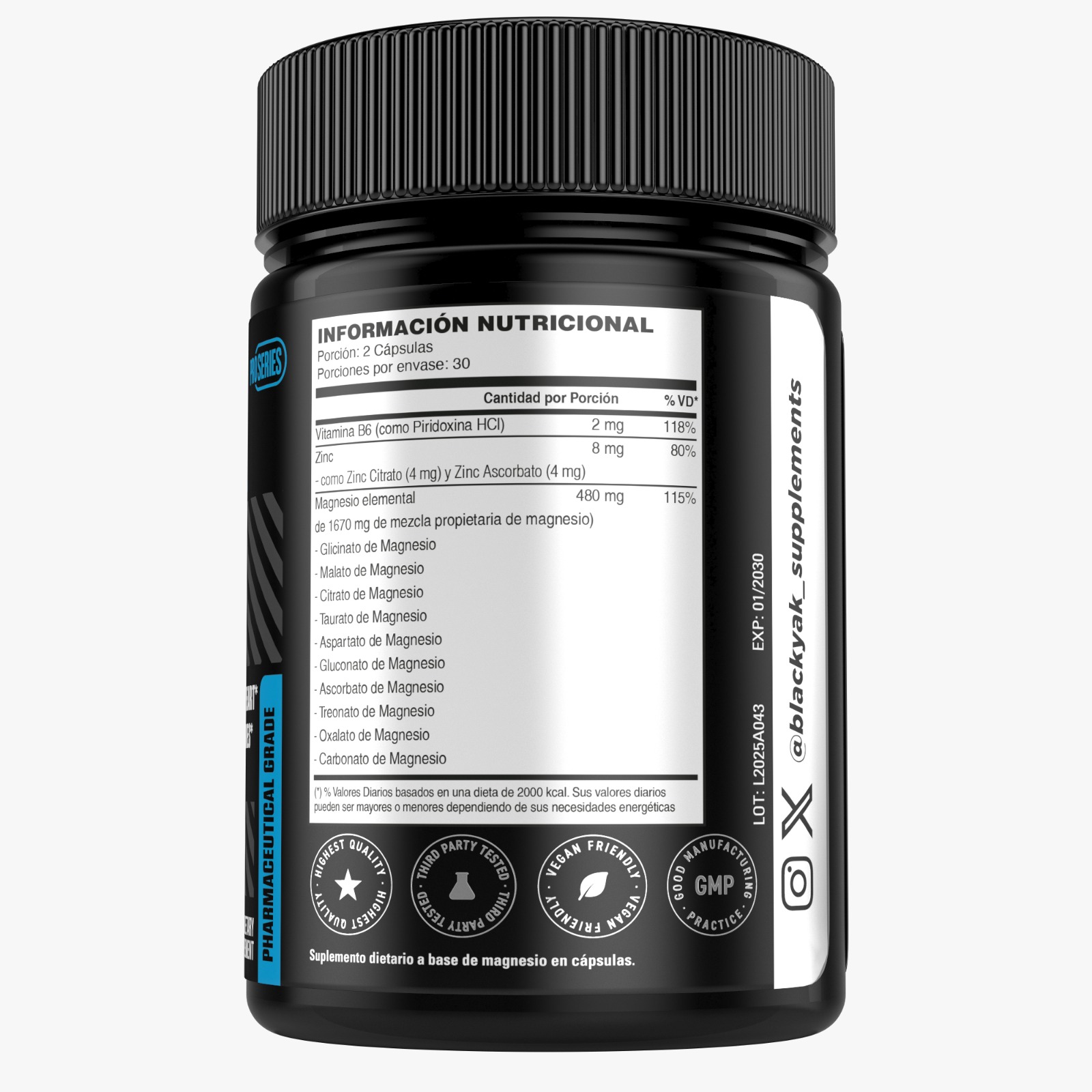 Cada porción aporta 480 mg de magnesio elemental, proveniente de una mezcla propietaria equilibrada: